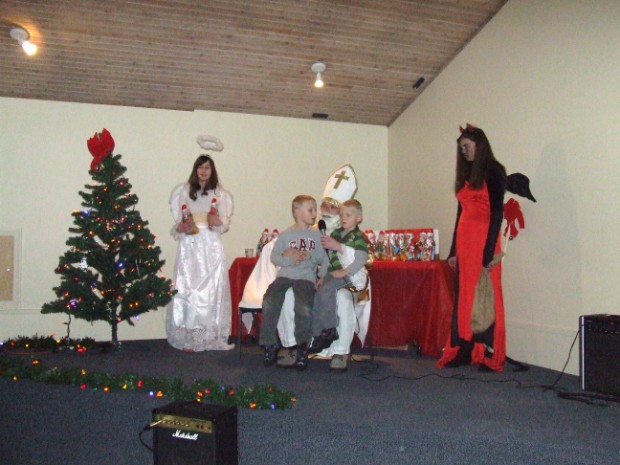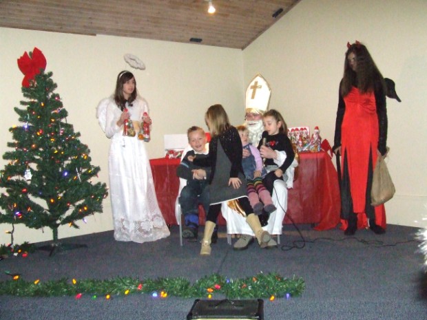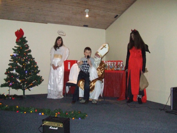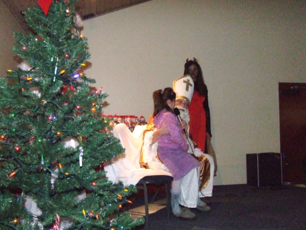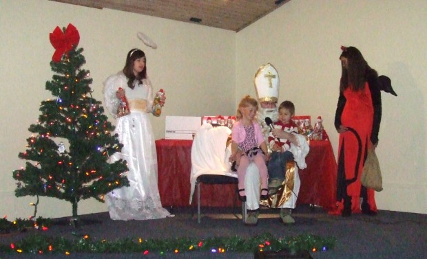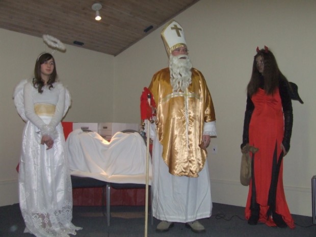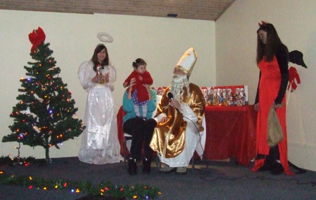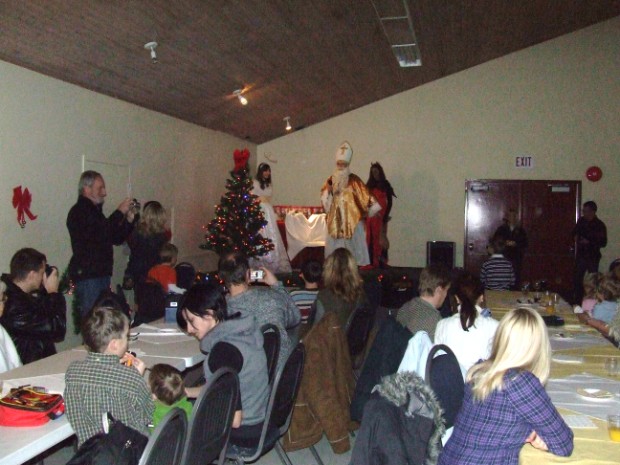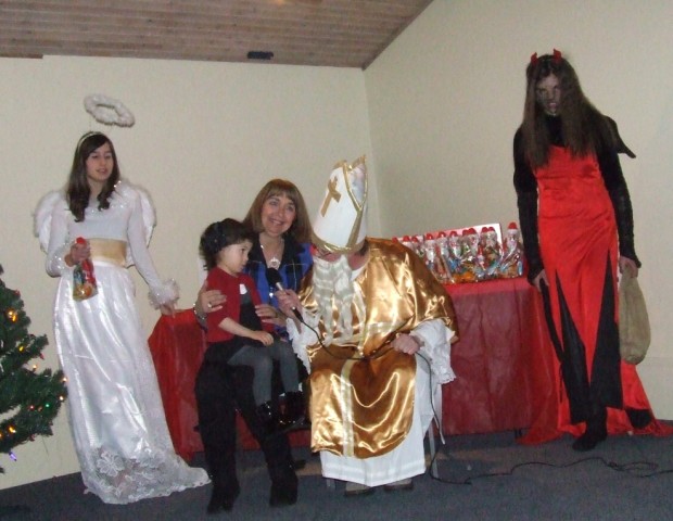 St. Mikuláš arrived in Calgary right on time, to the delight of scores of children and their parents. It was a traditional Santa along with his helpers, an Angel and the Devil. The latter did not have to dispense lumps of coal, because the Angel certified that all children were good all year long.St. Mikuláš was invited by the Slovak Club in Calgary and promised that next year he will again visit the over three-thousand strong Slovak community in the Heart of the New West.
