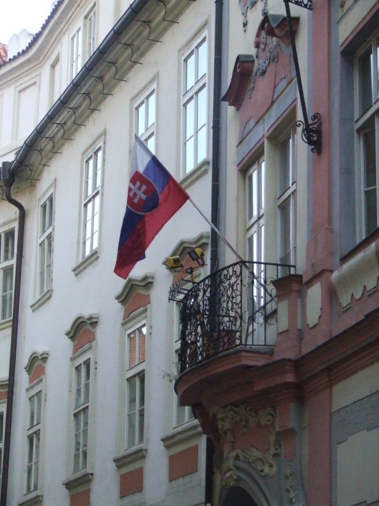 Prague is visited by thousands of tourists from Slovakia and from Canada. I was quite surprised when only a few streets from the famous Orloj Astronomical Clock, on an imposing building was a large Slovak flag. Could the Slovak Embassy be right in the tourist centre of Prague?