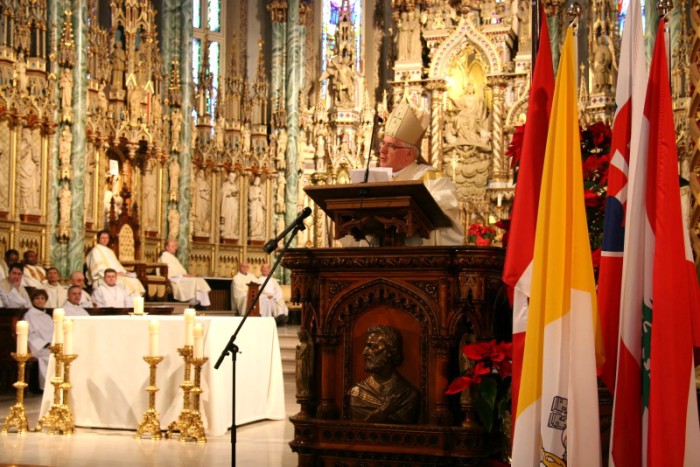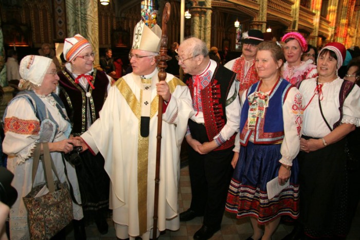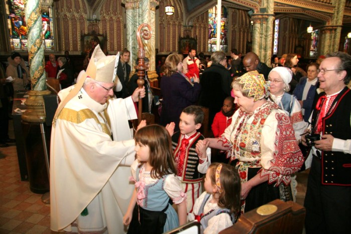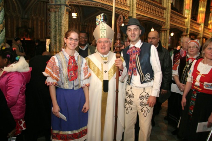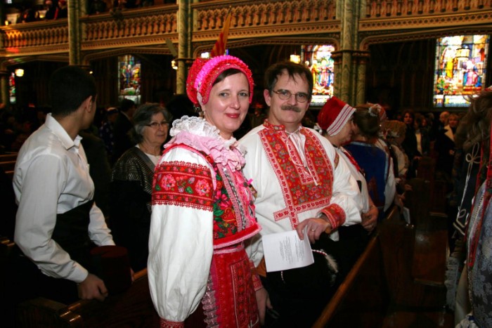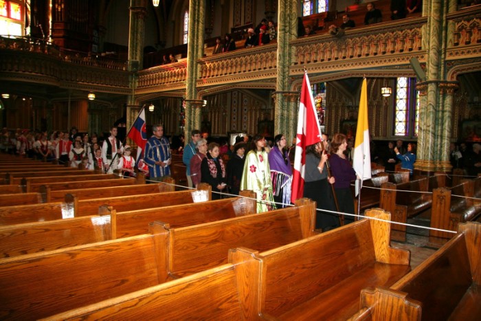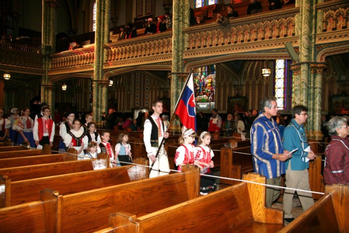 The Most Reverend Terrence Prendergast S.J., Archbishop of Ottawa presided at the Homelands Mass on January 16, 2011. The Homelands Mass is a most original and colourful celebration and features a procession into the Notre Dame Cathedral of traditional costumes and flags. Slovaks for the fourth year in a row had one of the largest delegations in national costume. Our group led the procession and occupied the front pews. Many other Slovaks attended the Mass as participants.