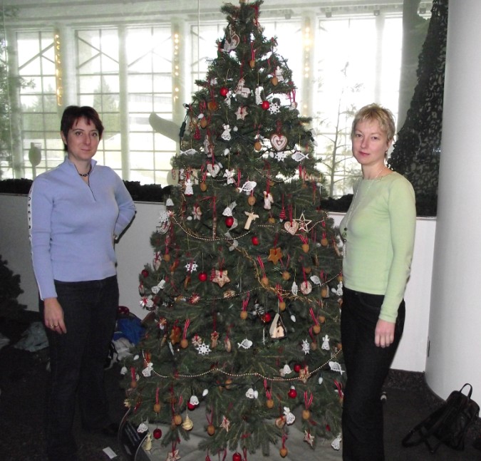 02 Andre Fabusova and Jana Hanzel, who did the design and decorating work of the winning tree, enjoy their victory.