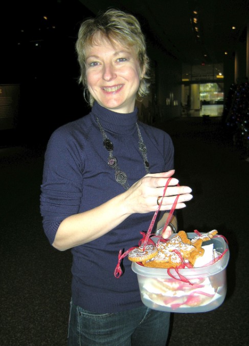 07 Jana Hanzel, one of the team who decorated the tree, shows off some of the many medovničky that made Museum visitors name it the "cookie tree".