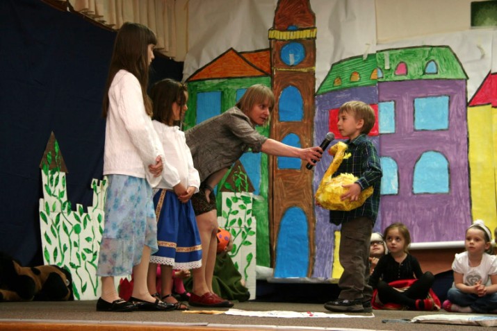 Mother’s day is a day to honor all our mothers with words of love and praise. Some sons and daughters shop for gifts; others make home-made crafts or a delicious breakfast in bed. But the Ottawa Slovak school teachers and children have an additional gift to give.They learn their lines, prepare stage props and coordinate acting positions for the annual Slovak School play at the Hyacinth Church.On May 8th, children of all ages performed. The older ones melted our hearts with their hard efforts to speak Slovak as best they could, while the younger ones gave our smiles a workout with one word liners and confidence larger than their own size. Cameras were continuously clicking and flashing. As a spectator, I was thoroughly entertained and I realized that these children are their mothers' greatest gift. After the performance, there was plenty of cake, coffee and juice for everyone. The children were free to play and laugh while the adults chatted. The camera was still rolling and our reporter interviewed the children, asking about their roles in the play and what they would like to tell their mom’s on mother’s day.