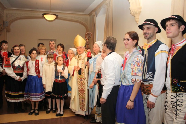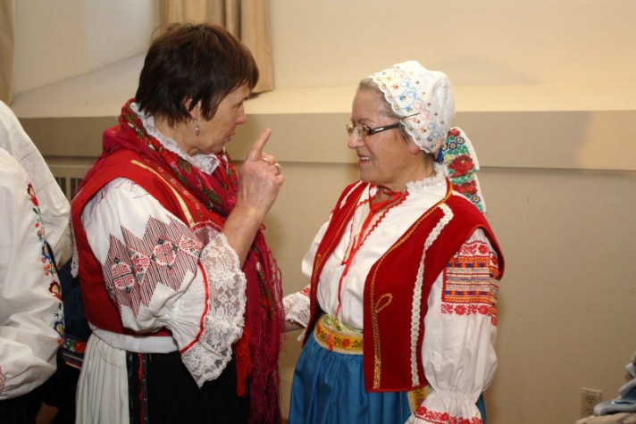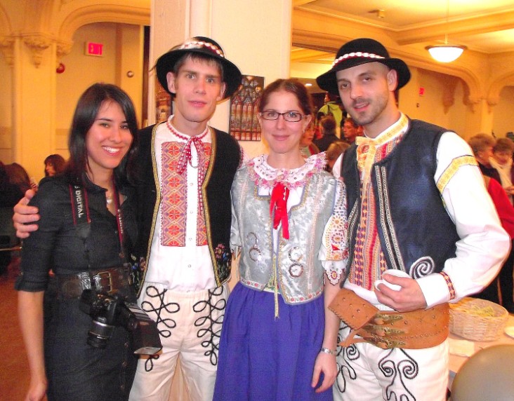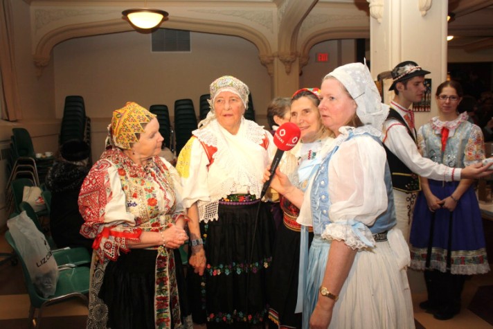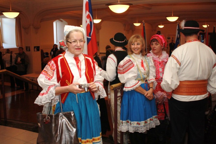 He particularly praised the brilliant team of Slovak-Canadian women whose work won the Canadian Museum of Civilization's very first Christmas tree contest in 2010. Their tree, decorated in the traditional Slovak way with medovniky, lacework, and straw figures, was voted by the Museum audience as the best of the 19 trees which were entered. The team was allowed to decorate a three-metre high tree -- "The Champion Tree"-- in a prominent place in the 2011 contest. Two members of that team present at the celebrations, Jana Hanzel and Katka Koziakova, were also congratulated by Canadian Slovak League President Mary Ann Doucette. And in the Canadian crowd some attendees were clearly showing off Slovak culture.