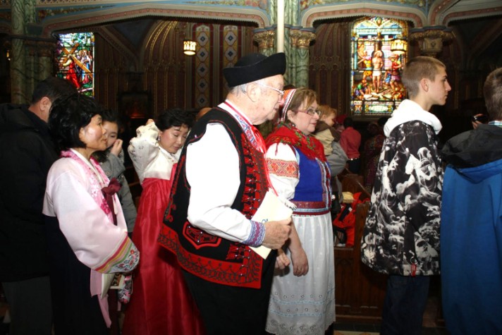 The next big event in Ottawa was the Homeland Mass. Slovaks as usual were among the outstanding delegations at the colorful Multicultural Mass which the Archdiocese of Ottawa sponsors every year at Notre Dame Cathedral.
