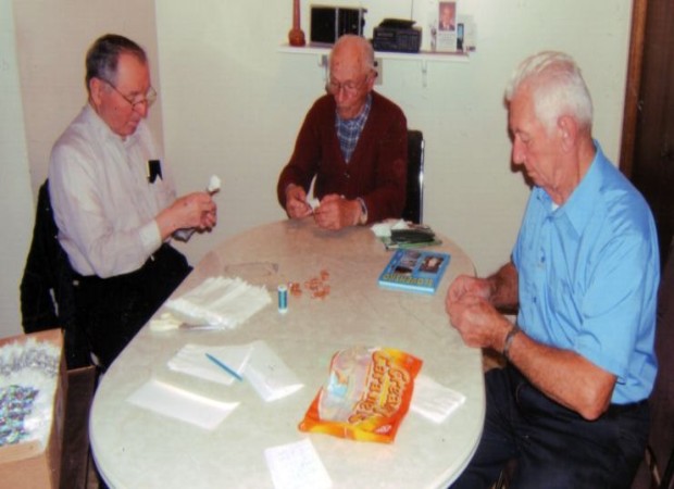 Photos: (right to left) Peter Suffak, Jakub Filicko and Andrej Humanaj making the salonky.
