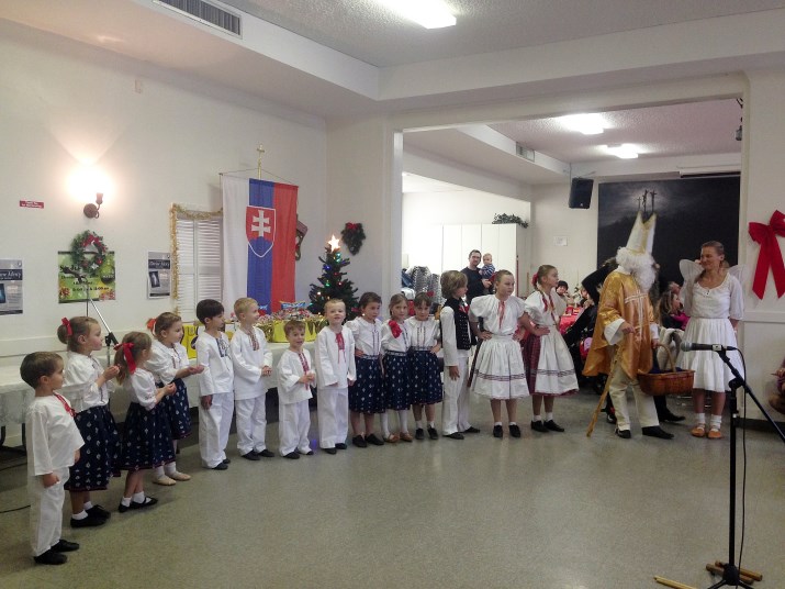 St. Nicolas then had to get on the sled and fly 2,718 km west to Calgary where Slovak kids were patiently waiting. He made it right on time, as always, and had a present for everybody. All kids were very good for the whole year, therefore, no coal was dispensed. Children from the dance group Slniečko expressed their Thank you with wonderful dances.