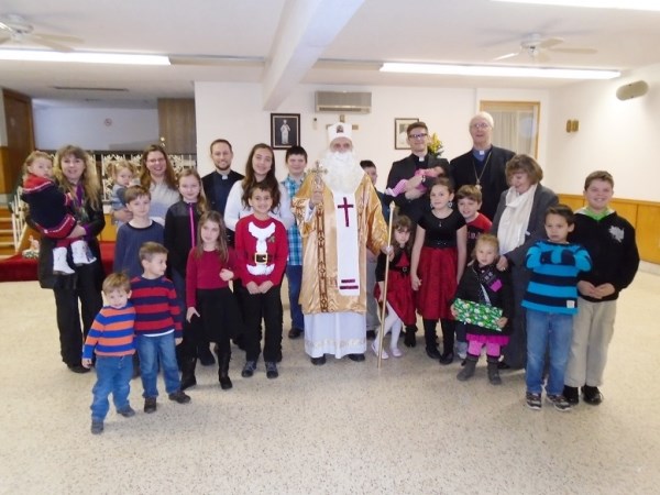 On December 6th kids and members of the Byzantine Catholic Slovak Cathedral of the Nativity of the Mother of God in Toronto were visited by St. Nicholas. Kids were very joyous to see St. Nicholas and were not disappointed as they all received presents and chocolates and also were served their favourite lunch. Many thanks to St. Nicholas for his visit.