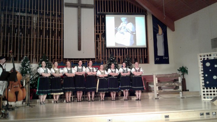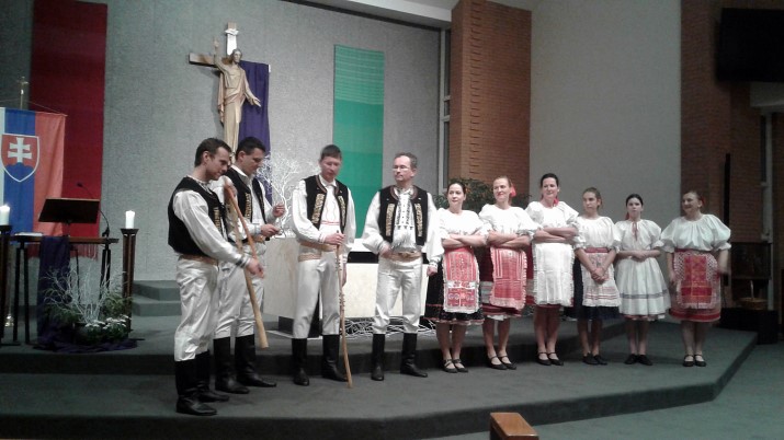 Predvianočná sezóna začala slovenskou sv. omšou v kostole sv. Gerarda ktorú nám oslúžil dôstojný pán Ján Baštigal. Organistka Magdaléna Kováčová vybrala tie najkrajšie slovenské vianočné omšové piesne a na konci prišli speváci z folklórneho súboru Slnečnica zaspievať nádherné slovenské koledy. Po sv. omši bolo v hale tradičné posedenie a pohostenie.