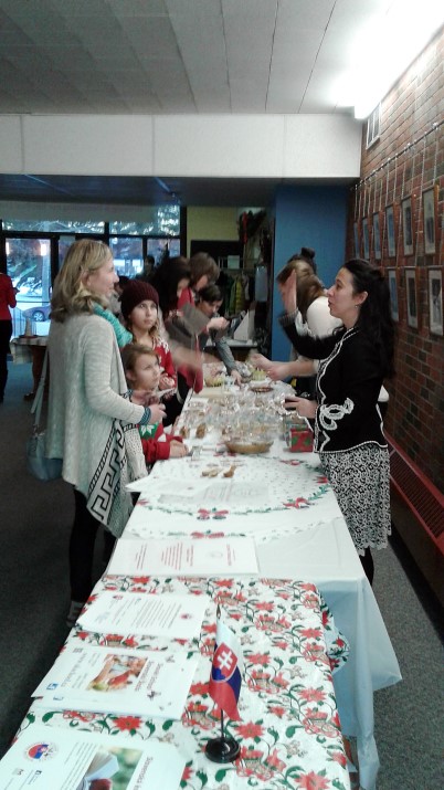 Mamičky zo Slovenskej školy pripravili na predaj výborné koláče, medovníky a vianočné oplátky, takže v Calgary sme mali všetky tradičné pochúťky ako na Slovensku. Celý výnos išiel na podporu Slovenskej školy.
