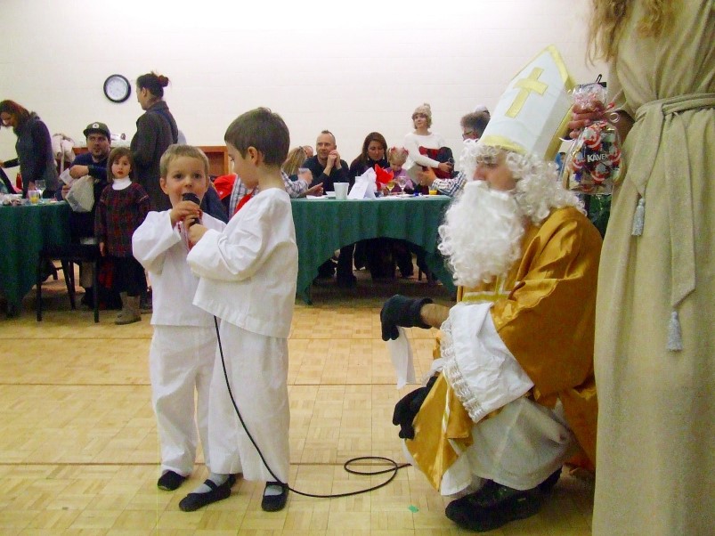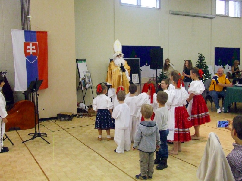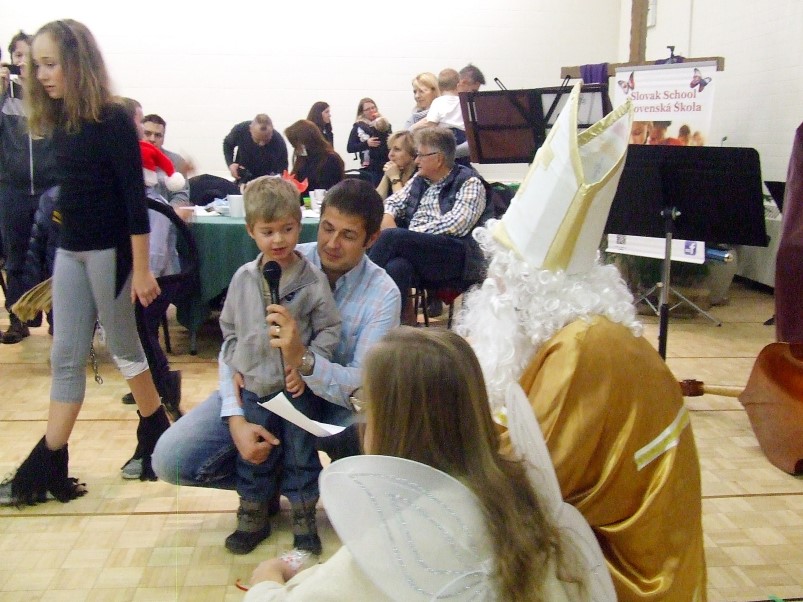 Zrazu bolo počuť zvončeky sobieho záprahu a v hale sa zjavil sv. Mikuláš s darčekmi. Veľmi dobre poznal slovenské zvyky a tak na rozdiel od kanadských Santov si priviedol aj anjela a čerta. Čert síce došiel zbytočne, pretože ani jedno dieťa nebolo také zlé aby si zaslúžilo namiesto darčeku kus uhlia, ale človek nikdy nevie.