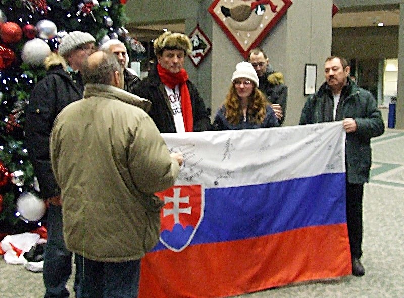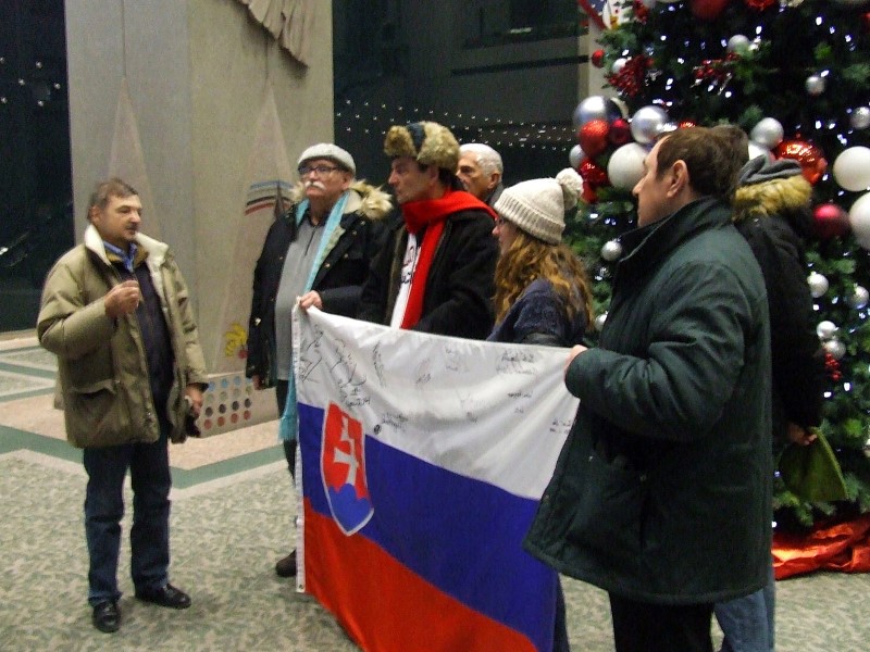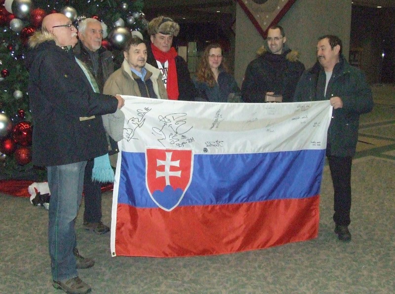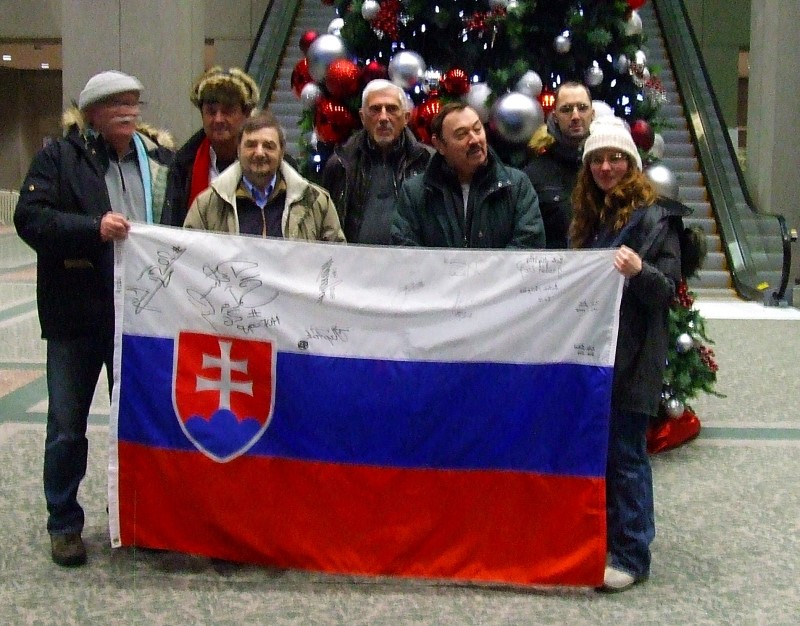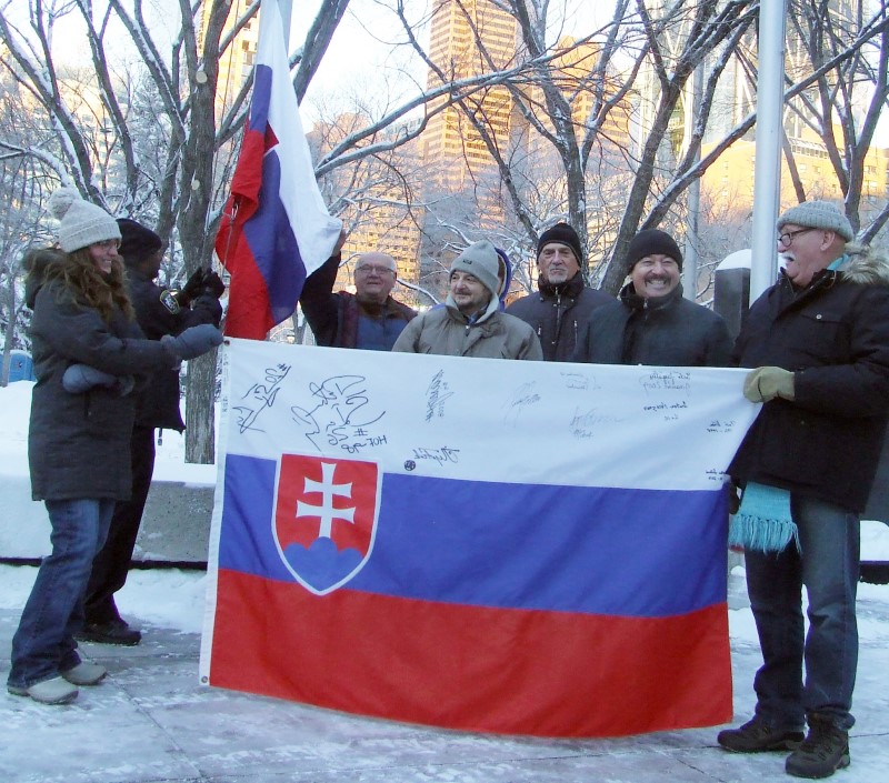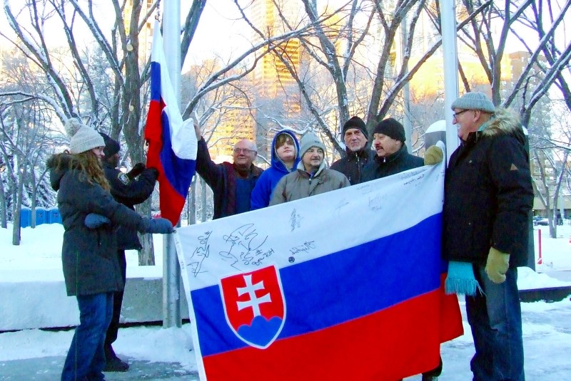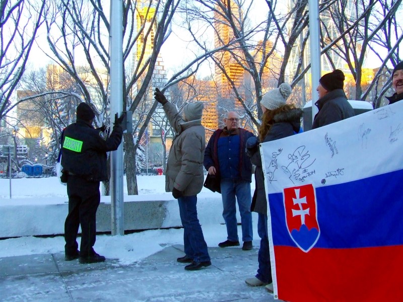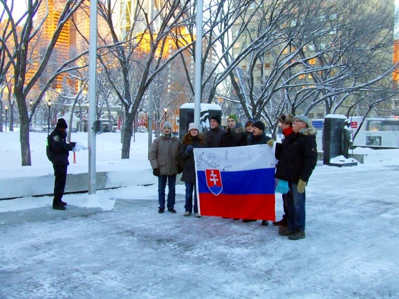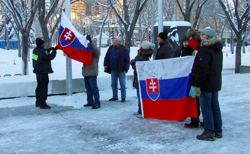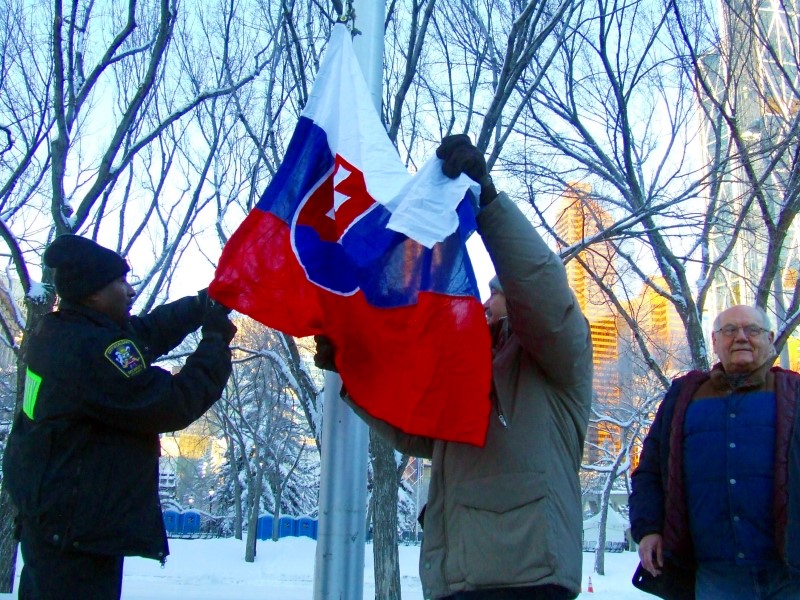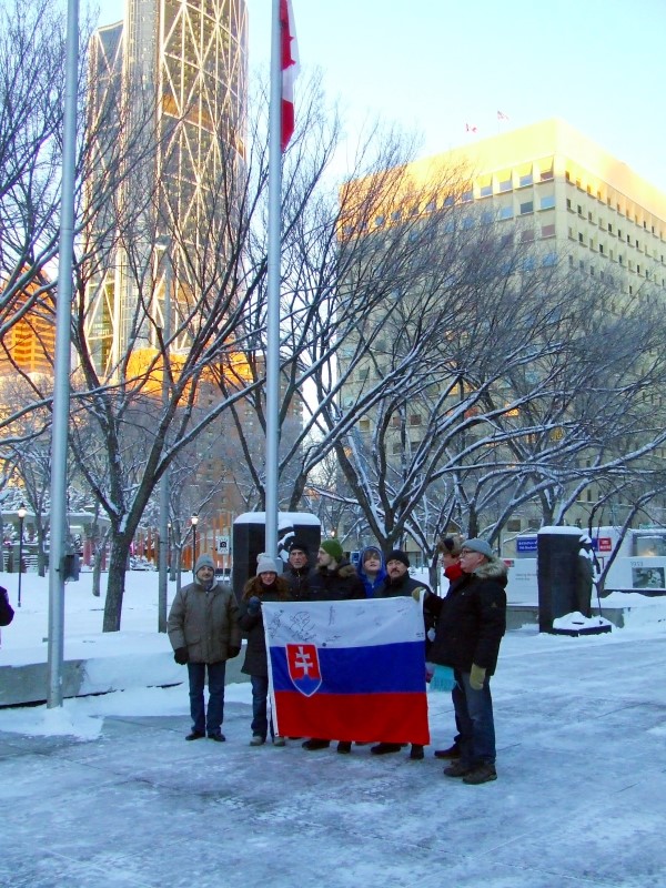 Na Nový rok pripadlo 25. výročie vzniku samostatnej Slovenskej republiky. Aj keď večer na Silvestra bola taká treskúca zima, -31 stupňov C, že mesto Calgary muselo zrušiť všetky vonkajšie oslavy príchodu Nového roka, ráno sa už výrazne oteplilo a Slováci v Calgary mohli aj po 25. krát vztýčiť slovenskú zástavu pred radnicou mesta. Mestská rada nám aj tento rok vyšla v ústrety a vydala potrebné povolenie a tak ochranná služba pri východe slnka odomkla čestný stožiar a pomohla zástavu vyvesiť aby tam mohla viať po celý novoročný deň.