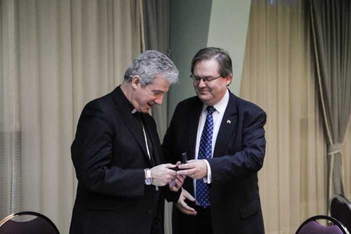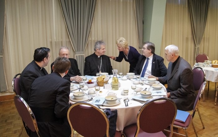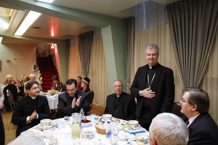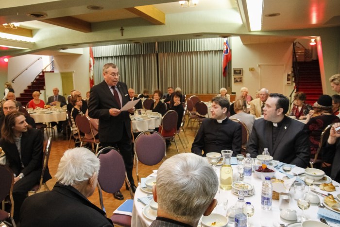 Po sv. omši pripravili kurátori kostola veľmi honosné pohostenie na ktorom sa zúčastnil ďalší významný, vážený a milý hosť veľvyslanec SR v Ottawe pán Milan Kollár ako i honorárny konzul SR v Montreale pán Dezider Michaletz. Veľvyslanec Kollár urobil špeciálnu prezentáciu 2-Euro mince, vyrazenej na Slovensku, pripomínajúcu našich patrónov sv. Cyrila a Metoda, ktorých blahorečený pápež Ján Pavol II tiež vyhlásil za patrónov Európy. Arcibiskup bol veľmi dojatý s týmto mementom z jeho návštevy farnosti.