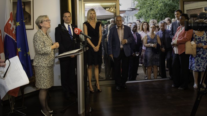 ustava2016 200Vo štvrtok 8. septembra 2016 sa na pôde Veľvyslanectva Slovenskej republiky v Ottawe uskutočnila slávnostná recepcia pri príležitosti Dňa Ústavy. Na recepcii sa zúčastnilo približne 250 hostí zastupujúcich kanadskú vládu, parlament, diplomatický zbor, podnikateľskú sféru, mimovládne organizácie, média a v neposlednom rade početnú slovenskú komunitu nielen z Ottawy, ale aj Toronta, Montrealu a ďalších častí Kanady.