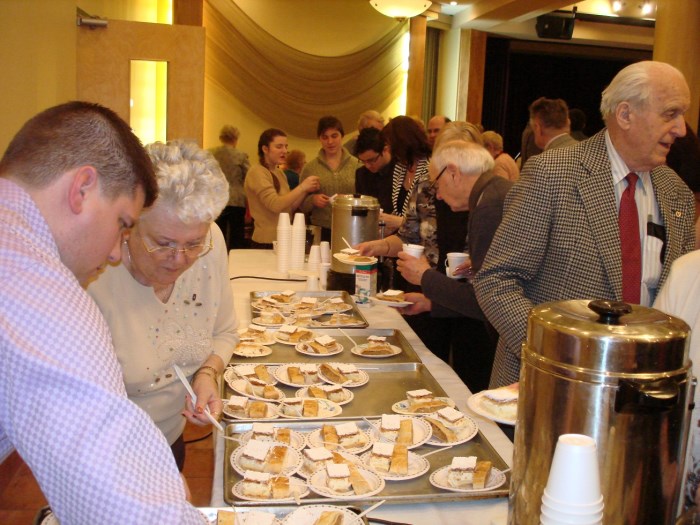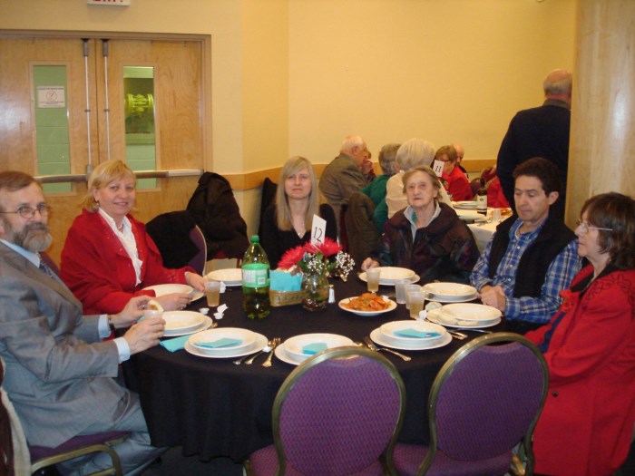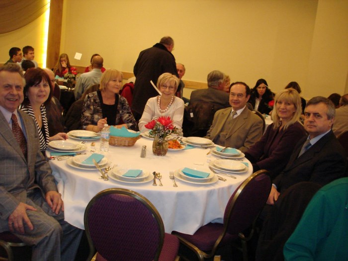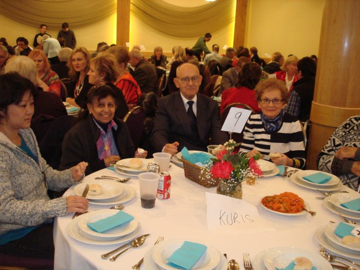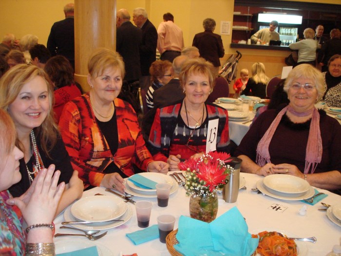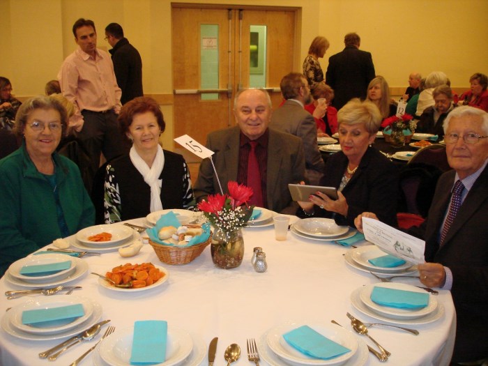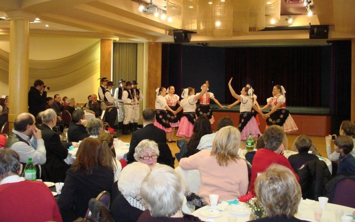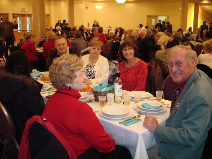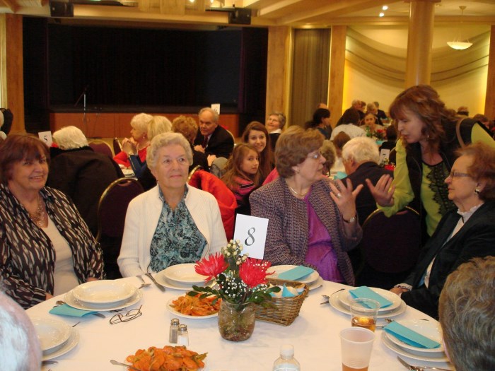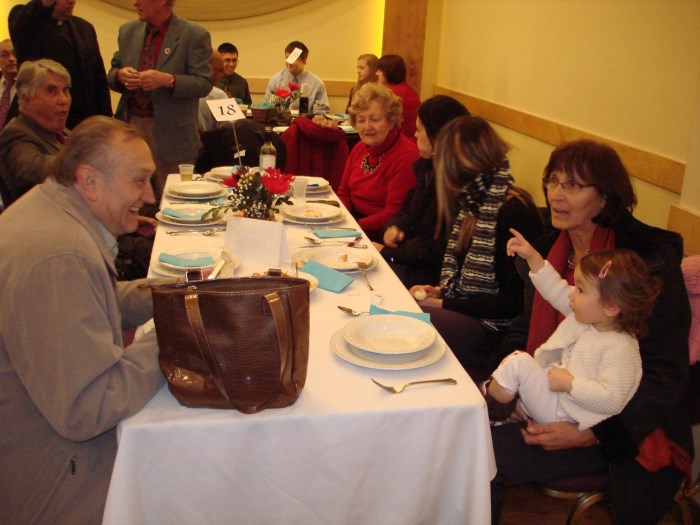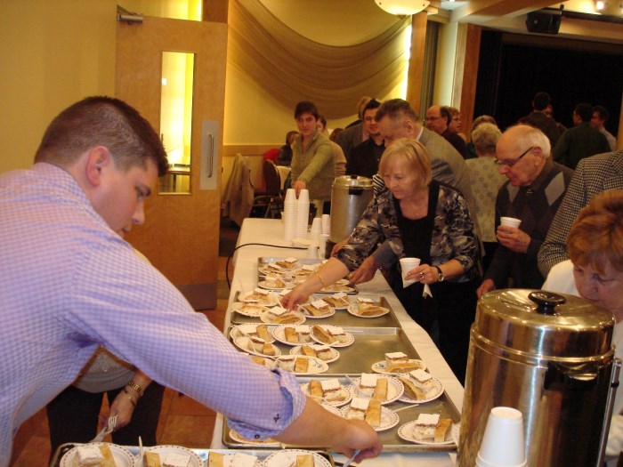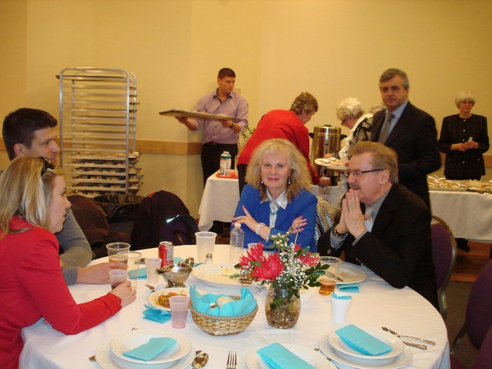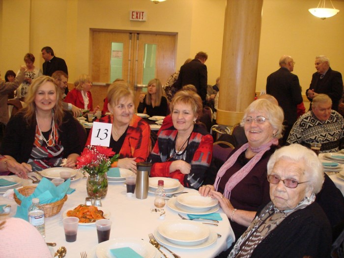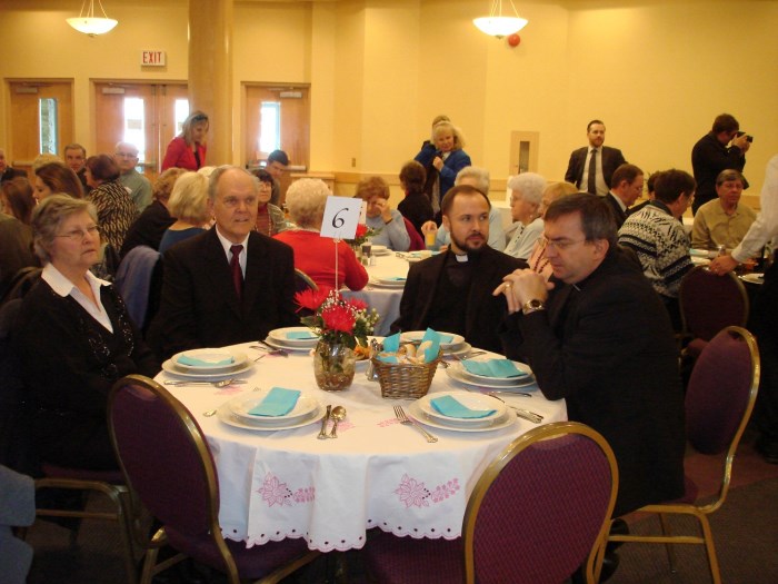 Po omši sa viac ako 200 farníkov, kléru a priateľov zhromaždilo vo farskej sále na slávnostnom obede. Výdatné jedlo si všetci vychutnali, a po jedle si zase pozreli vystúpenie slovenských tanečníkov zo súboru Východná. Toto podujatie by sa nemohlo uskutočniť bez neúnavného úsilia mnohých dobrovoľníkov, ktorí strávili niekoľko dní svojho času prípravami.