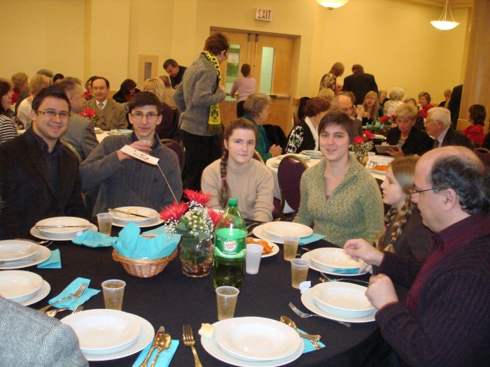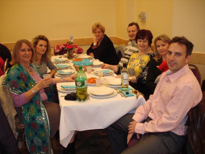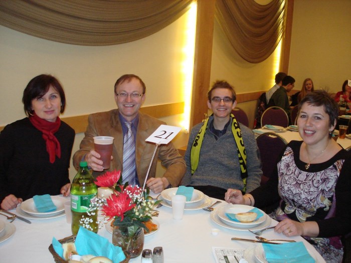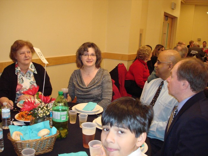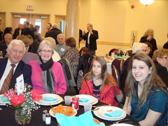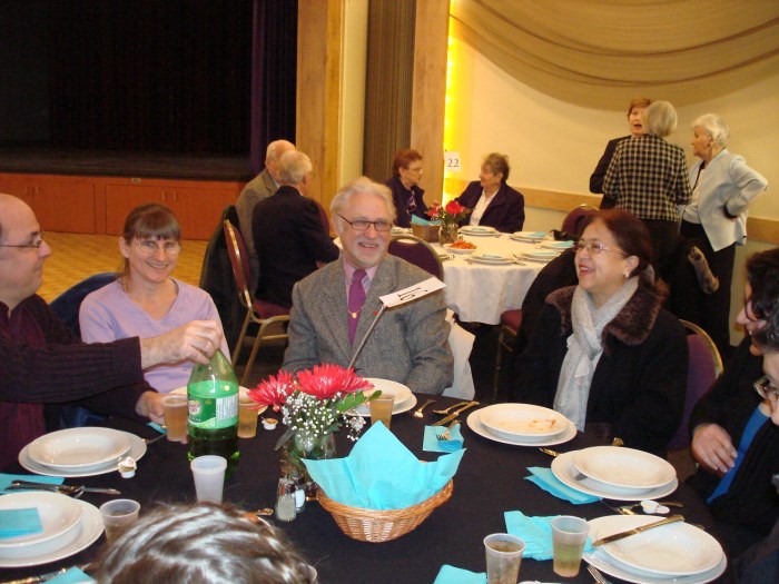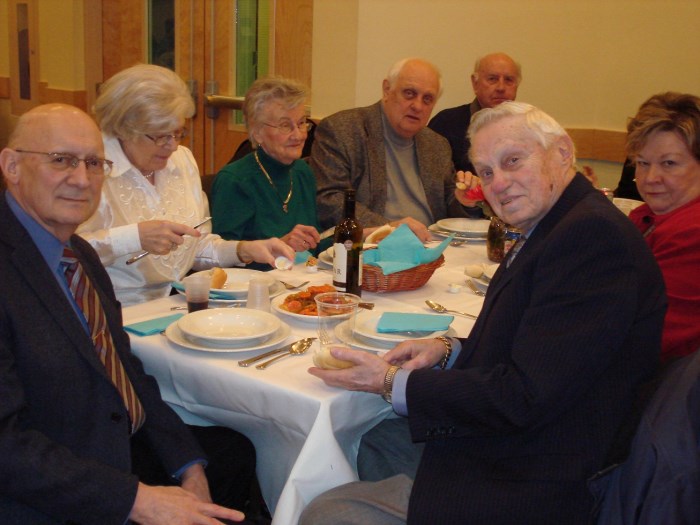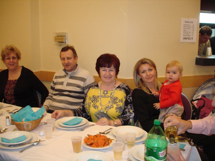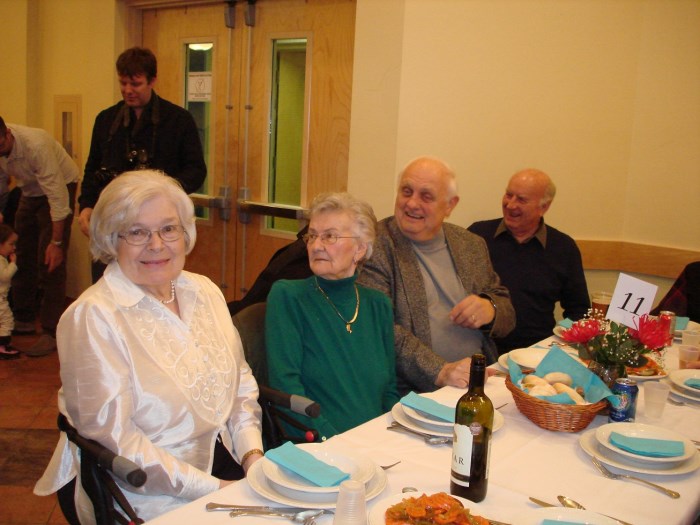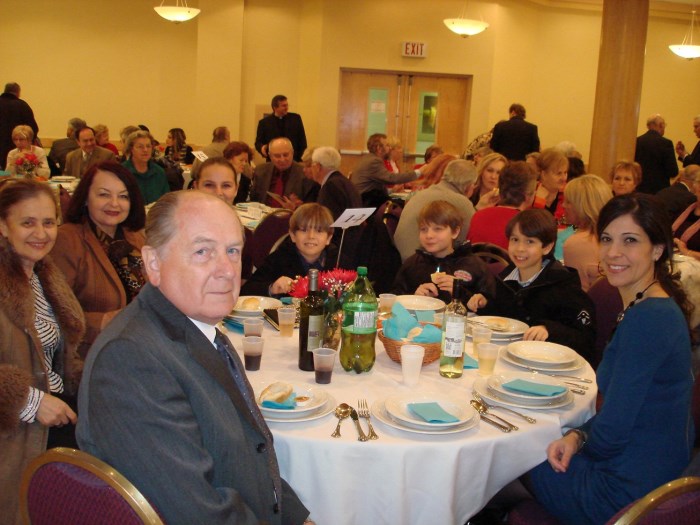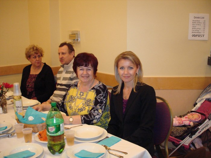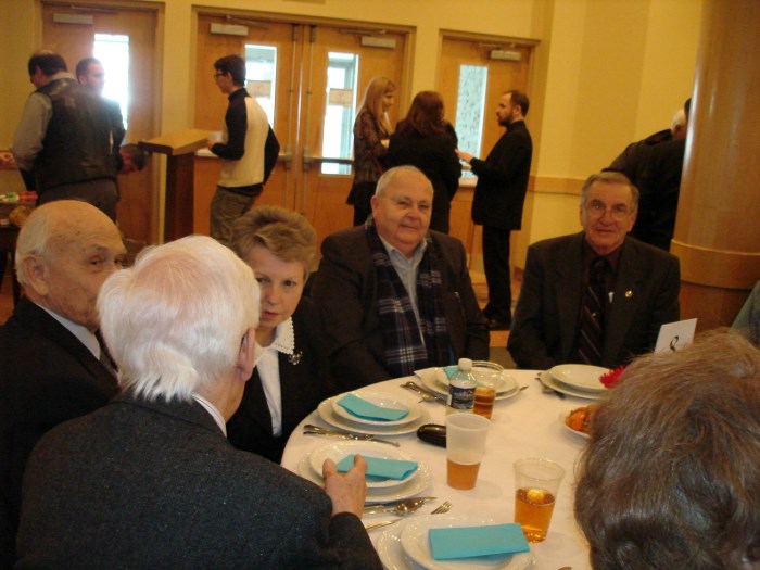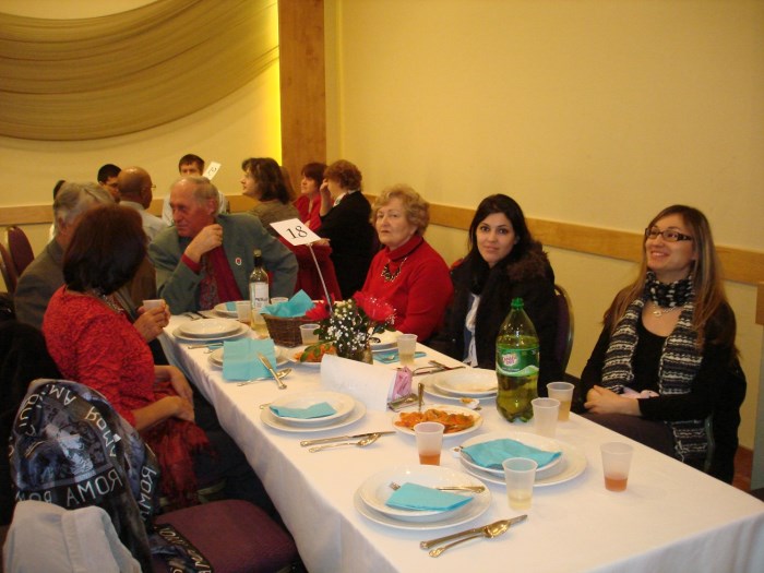 Po omši sa viac ako 200 farníkov, kléru a priateľov zhromaždilo vo farskej sále na slávnostnom obede. Výdatné jedlo si všetci vychutnali, a po jedle si zase pozreli vystúpenie slovenských tanečníkov zo súboru Východná. Toto podujatie by sa nemohlo uskutočniť bez neúnavného úsilia mnohých dobrovoľníkov, ktorí strávili niekoľko dní svojho času prípravami.